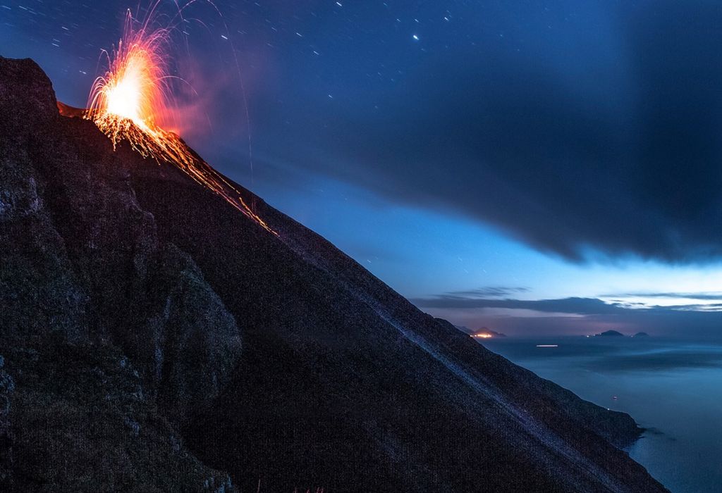 Stiamo parlando del vulcano Stromboli, nell'isola omonima, noto fin dall'antichità come "faro del Mediterraneo" perché le eruzioni avvengono continuamente, in modo persistente da almeno due millenni.
