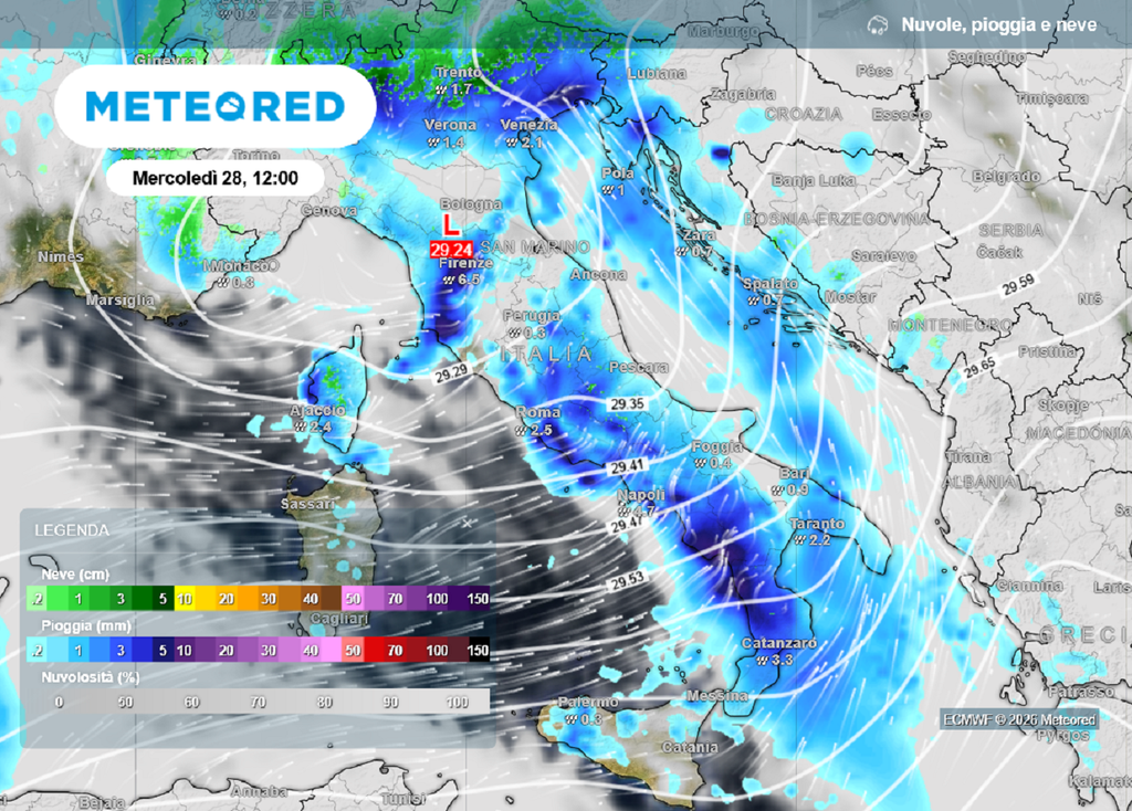 Maltempo, è allerta arancione su Lazio, Sardegna e Molise. Allerta gialla su gran parte dell'Italia. I dettagli con le previsioni e l'avviso meteo del 28 gennaio 2026.