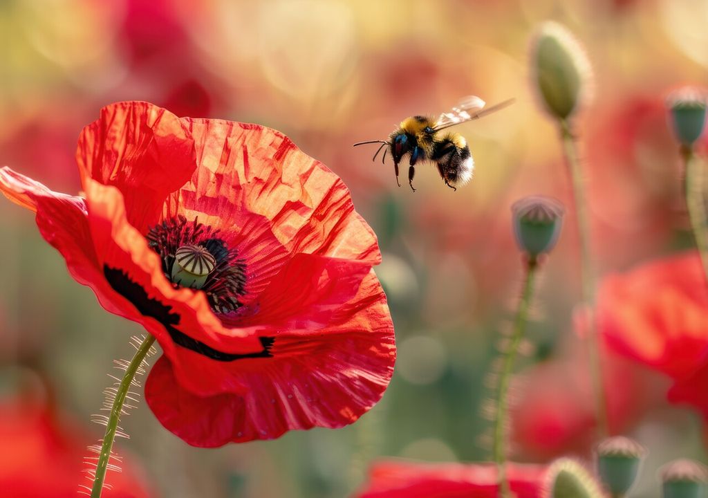 Il papavero è una pianta mellifera e i suoi fiori attirano api, bombi e altri impollinatori, offrendo loro una preziosa fonte di nettare in primavera.