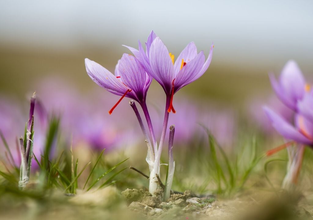 Dalla parte sotterranea emergono foglie sottili e lanceolate, di colore verde intenso, e fiori di un caratteristico viola intenso, all’interno dei quali si trovano i tre pistilli rossi, organi che contengono la spezia preziosa.