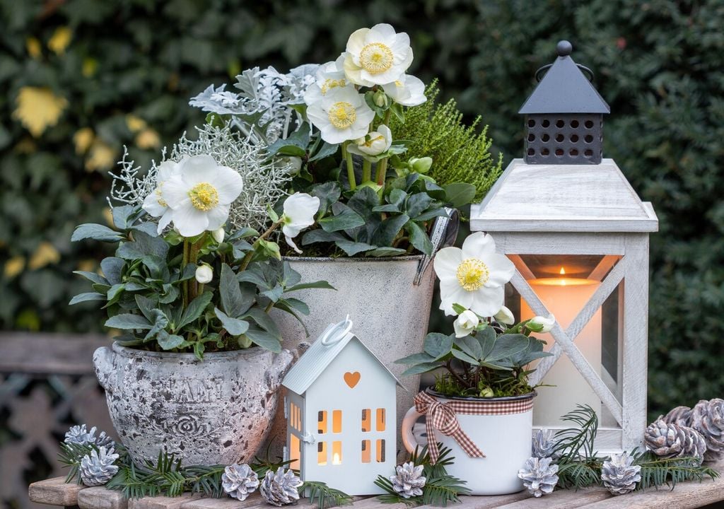 Per creare composizioni suggestive, l’elleboro può essere affiancato a ciclamini, giacinti in crescita, primule e piccole conifere da vaso.