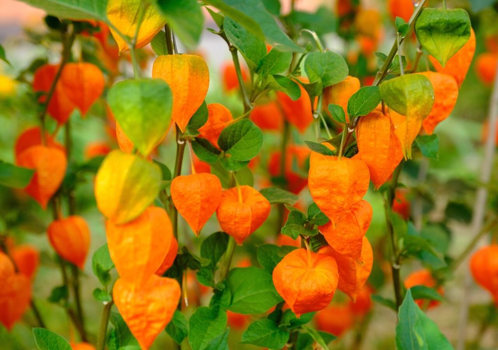Nota per i suoi caratteristici calici arancioni a forma di lanterna, che racchiudono i frutti, questa pianta erbacea porta un tocco esotico e stravagante alle composizioni autunnali. In vaso può crescere fino a 60–80 cm ed è molto resistente, purché coltivata in pieno sole e in terreni ricchi e ben drenati. Va tenuta sotto controllo perché tende a espandersi rapidamente, ma in contenitori resta ordinata e molto ornamentale.
