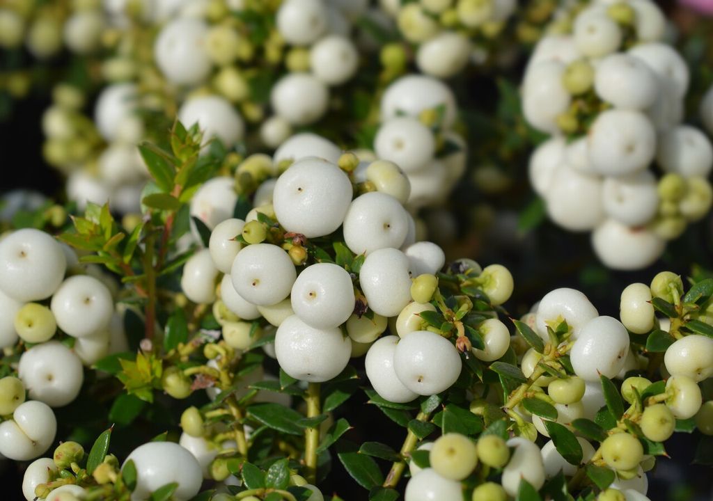 Conosciuto anche come “perla di neve”, il sinforicarpo è un arbusto che produce bacche bianche o rosa, raccolte in grappoli che persistono fino all’inverno. Le sue dimensioni in vaso si mantengono contenute, intorno ai 60–100 cm, ed è facile da coltivare perché si adatta a diversi tipi di terreno ed esposizione, dal sole alla mezz’ombra. È una pianta versatile, ideale per aggiungere leggerezza e un tocco originale alle composizioni autunnali.