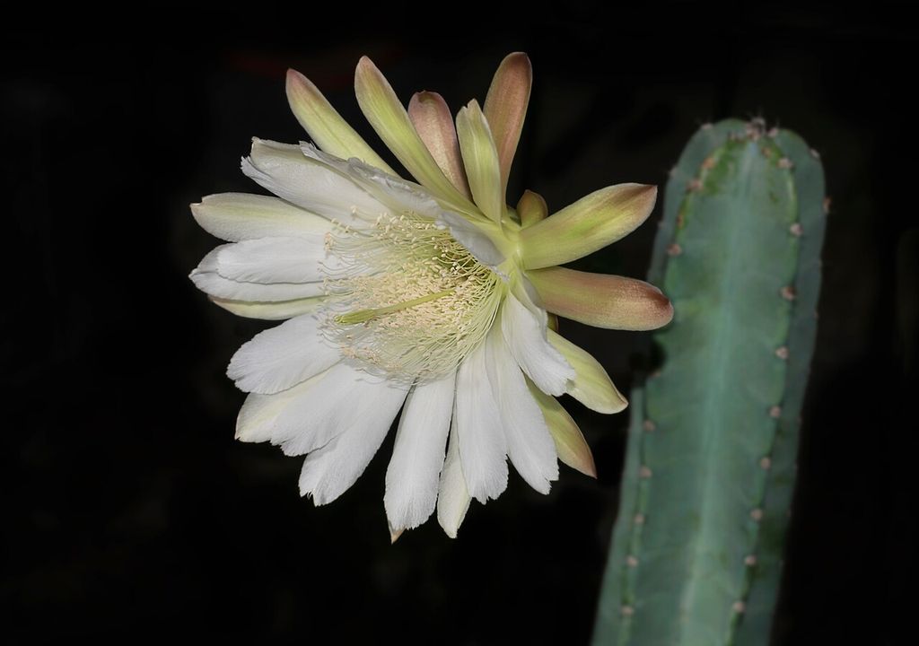 Cereo del Perù (Cereus peruvianus): diffuso nelle regioni aride del Sud America, produce fiori grandi e profumati che si aprono esclusivamente durante la notte, attirando pipistrelli e grandi insetti notturni.