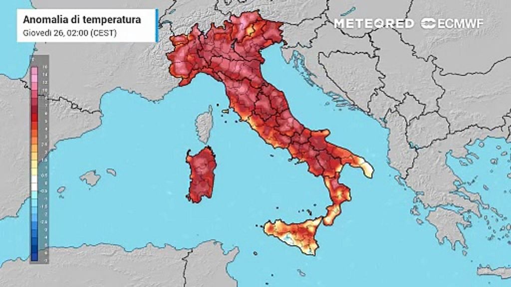 Più contenuto ma comunque significativo il caldo al nord, dove le temperature saranno superiori di 4-6°C rispetto alla media del periodo, con punte di 33-35°C in Pianura Padana e circa 30-32°C nel resto del territorio.
