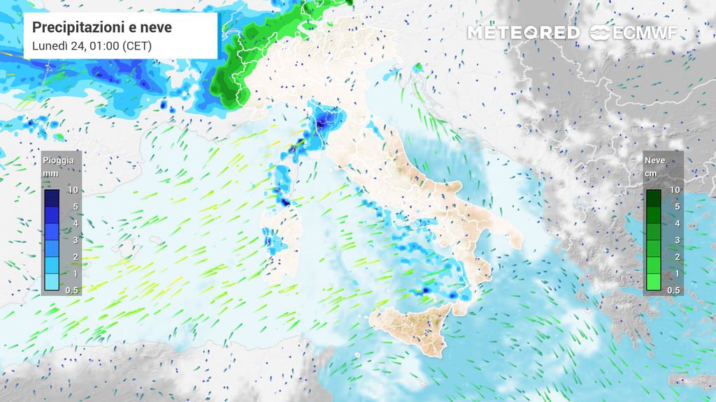 Più marginali gli effetti su Puglia e basso Lazio, dove potranno comunque verificarsi brevi rovesci sparsi.
