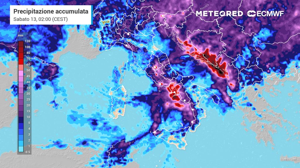L’evoluzione vede la perturbazione scivolare verso sud, andando a colpire tra il tardo pomeriggio e la notte più direttamente il basso Tirreno e la Campania, sui cui settori costieri potrebbero accumularsi oltre 100 mm di pioggia in poco tempo, come già accaduto in altre regioni tra ieri e oggi.