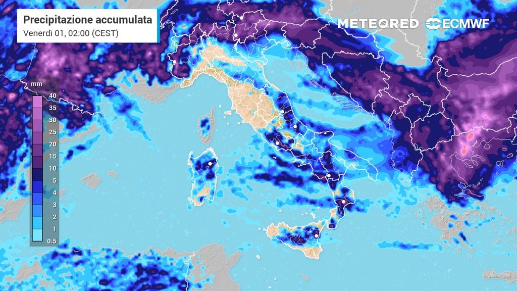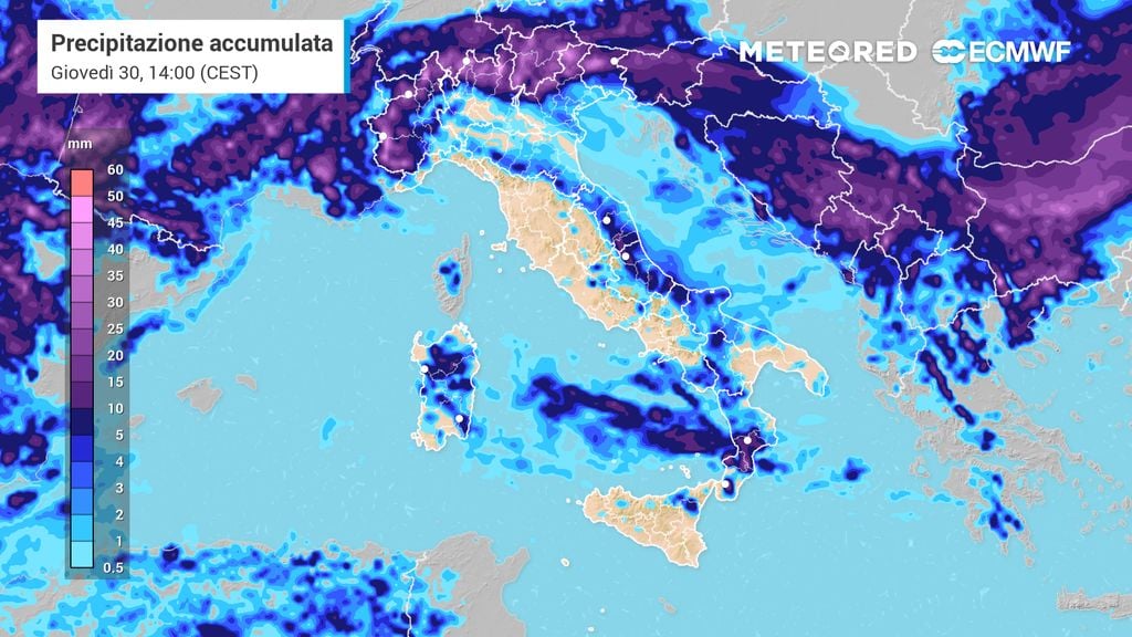 Pioggia cumulata in Italia nel corso di questa settimana.