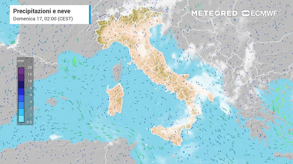 Sono previste condizioni instabili con possibilità di temporali localmente intensi in Abruzzo, Basilicata, Calabria, Campania, Lazio, Liguria, Lombardia, Molise, Puglia, Sicilia, Trentino-Alto Adige (provincia di Bolzano) e Umbria.