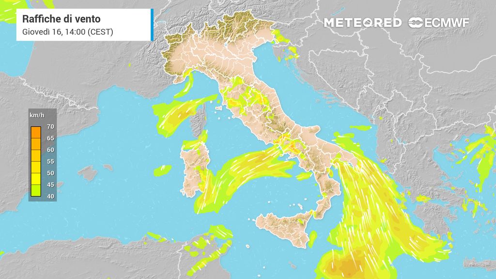 Oltre alle piogge, i sistemi convettivi che si svilupperanno vicino le coste di Sardegna, Sicilia e Calabria aumentano il rischio anche di fenomeni vorticosi e forti raffiche di vento, legate ai downbursts umidi.