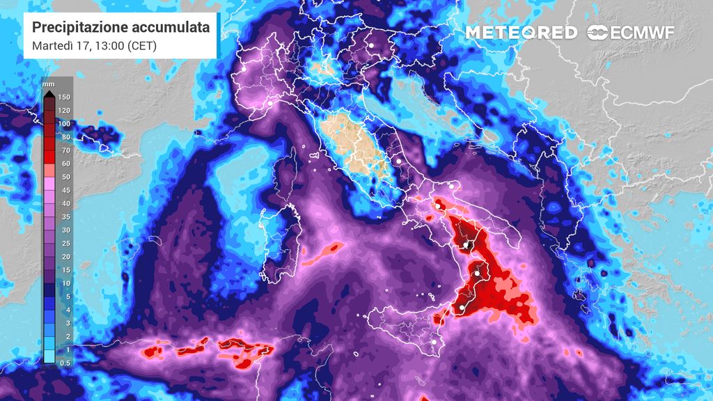 Nel corso della giornata però, il maltempo si sposterà rapidamente verso sud, spazzando la penisola. Sarà poi nel tardo pomeriggio quando il maltempo si farà sentire con forza su Sicilia e Calabria, lasciando al suolo decine di mm di accumulo di pioggia e forti raffiche di vento.