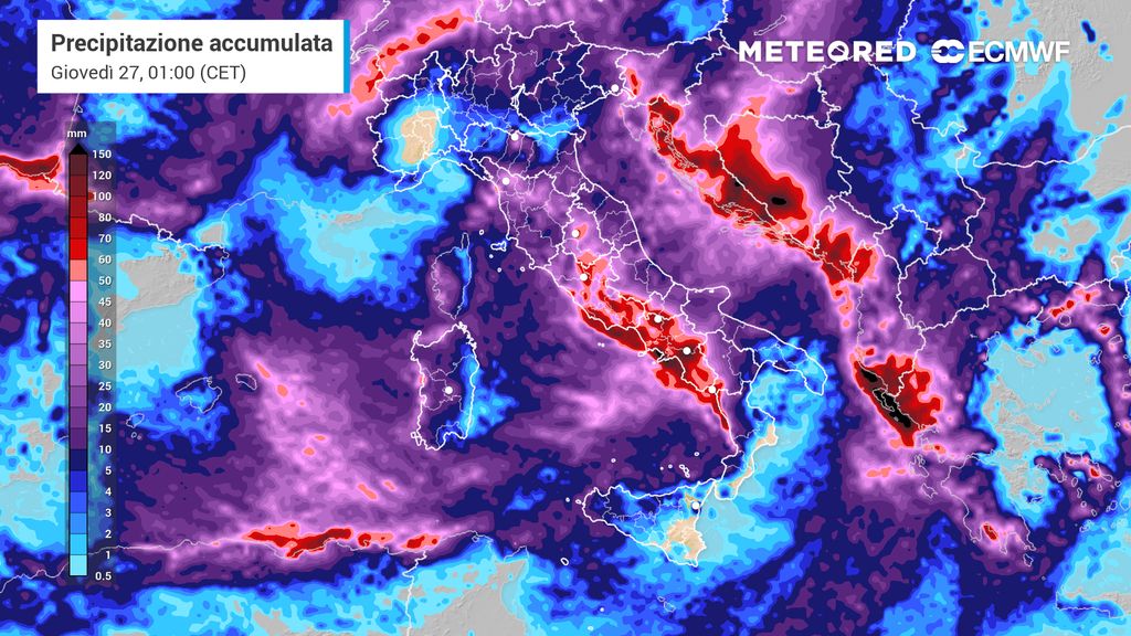 Le regioni maggiormente interessate da questa nuova ondata di maltempo saranno quelle centro meridionali, in particolare quelle tirreniche, dove sono attesi i fenomeni più intensi, persistenti e abbondanti.