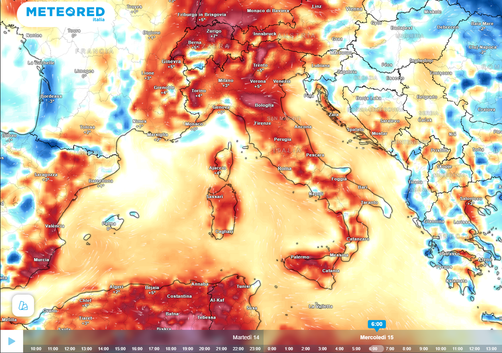 Nei prossimi giorni la risalita di masse d’aria calde, di origine subtropicale continentale, dai deserti dell’Algeria e della vicina Tunisia verso il Mediterraneo centrale e i mari fra Sardegna e Sicilia, provocherà un brusco aumento delle temperature, specialmente in Sicilia, dove si potranno superare i +32°C +34°C.