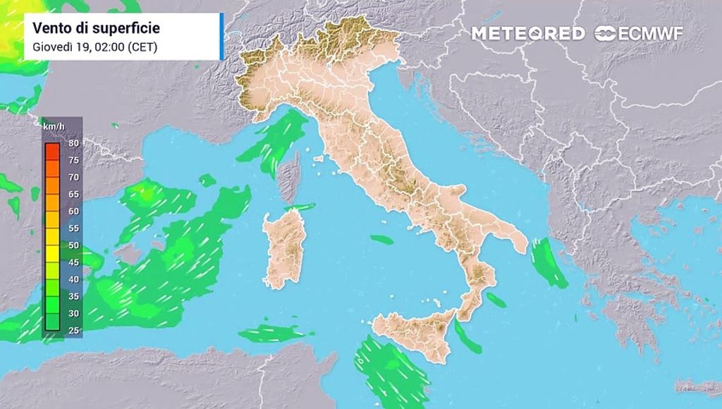 Il rapido tracollo della pressione barometrica atteso in serata farà acquistare ulteriore velocità ai già forti venti di maestrale in uscita dal Rodano, specialmente fra il Golfo del Leone, il mar di Corsica e il mare di Sardegna, dove nella fase clou si potrebbe raggiungere forza 9-10 Beaufort, con raffiche capaci di raggiungere punte di oltre 120-140 km/h.