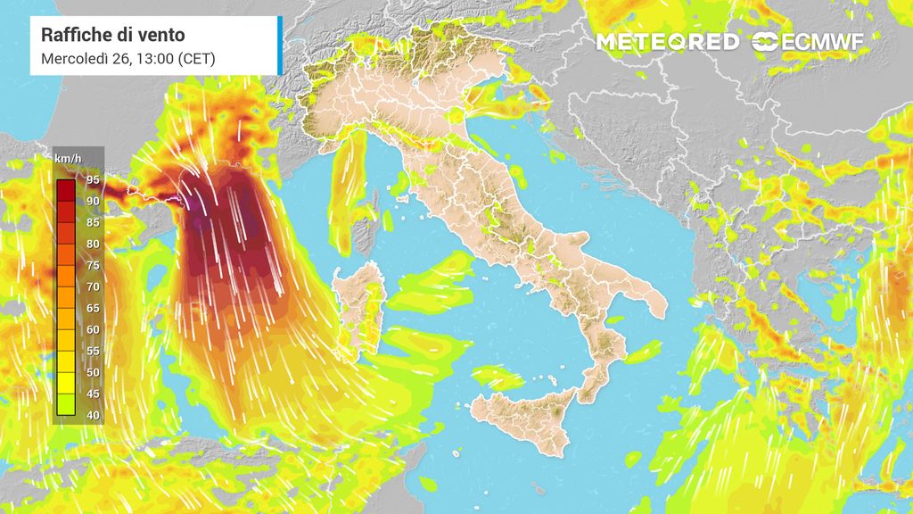 Elemento di spicco di questa fase sarà il vento. L’ingresso della nuova depressione darà infatti vita a una ventilazione molto intensa: raffiche fino a 70–80 km/h potranno interessare le coste tirreniche, l’alto Adriatico, la Sardegna e successivamente anche lo Ionio.