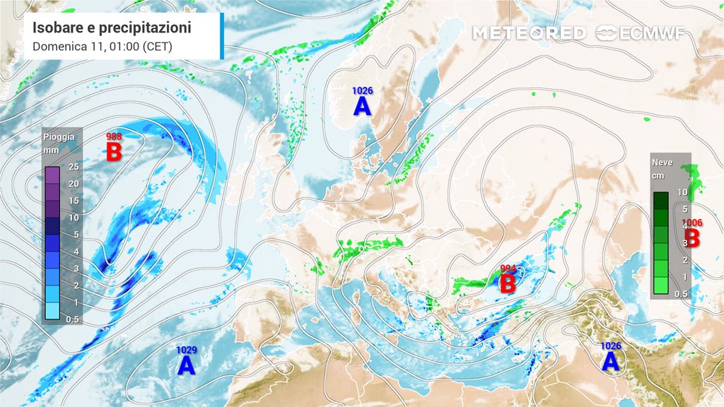 Alla base della tempesta di neve in arrivo c’è l’incontro tra aria artica molto fredda e masse d’aria umide convogliate da ovest verso l’Europa centrale. Allo stesso tempo si approfondisce una intensa area di bassa pressione, che accelera notevolmente i venti. È proprio questa miscela a trasformare una normale nevicata in un blizzard pericoloso.