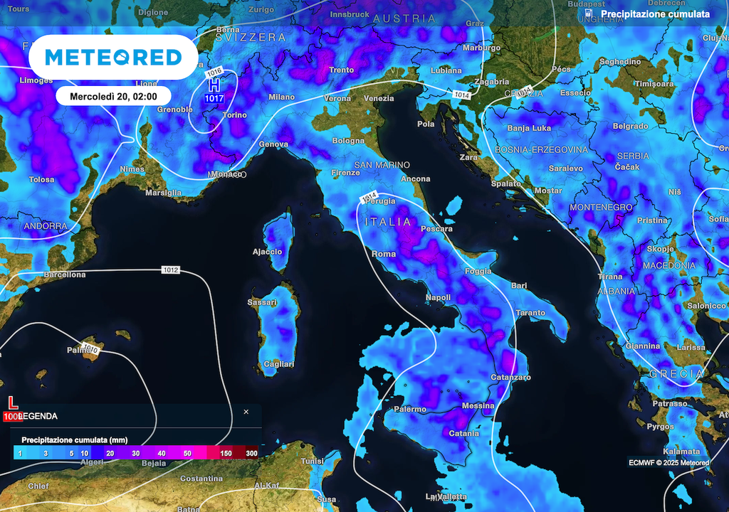 Il suo ingresso porterebbe un fronte freddo più organizzato con temporali localmente intensi al Nord e parte del Centro e calo termico più deciso. Al Sud il caldo resisterebbe ancora, ma con valori meno estremi.