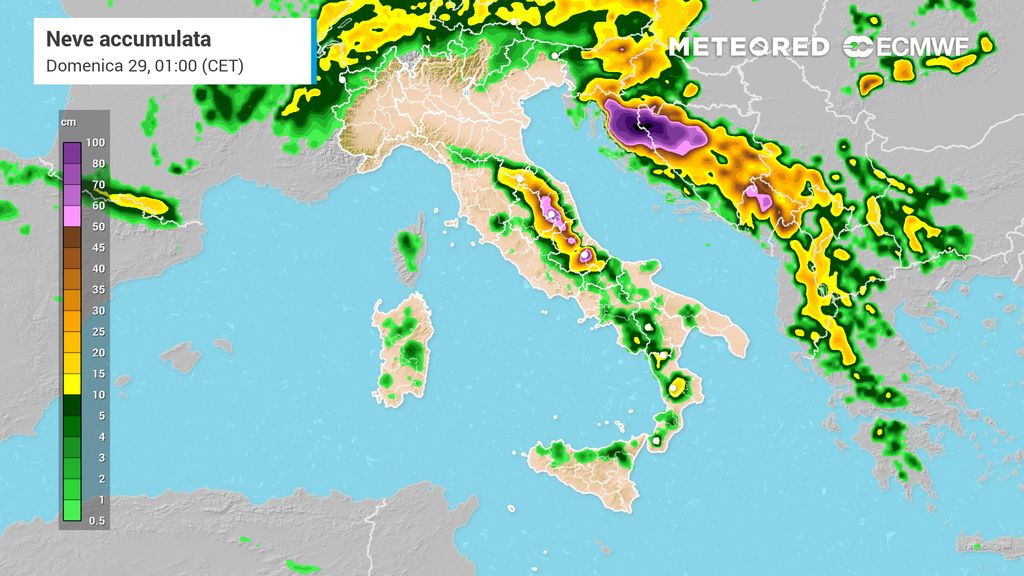 Le simulazioni attuali suggeriscono che le precipitazioni potrebbero insistere con carattere nevoso già a partire dai 400-500 metri di altitudine sull'Appennino centrale. In centri come L'Aquila, Campobasso e Urbino, le proiezioni modellistiche prevedono accumuli che potrebbero variare tra i 10 e i 20 cm.