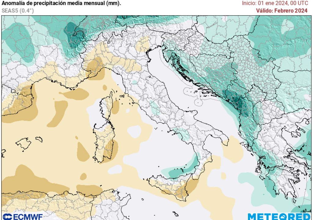 Dal punto di vista termico il mese di febbraio, nel suo complesso, dovrebbe essere caratterizzato da temperature poco sopra le medie del periodo, soprattutto nelle regioni settentrionali, durante la prima decade. Al Sud e sulle Isole Maggiori questa anomalia dovrebbe risultare più lieve, venendo ammortizzata da possibili ondate di freddo provenienti dall’area balcanica.