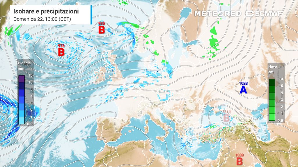 L’anticiclone tende a perdere struttura e il flusso atlantico torna ondulato, con possibili affondi perturbati verso l’Europa centro-occidentale e il Mediterraneo. Non emergono segnali di formazione del blocco scandinavo né configurazioni da irruzione fredda tardiva.