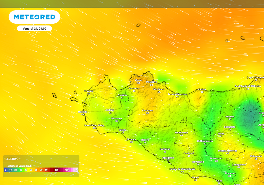 Sarà una “quasi-tempesta”, non una tempesta vera e propria. In meteorologia, infatti, per parlare di tempesta servono raffiche diffuse almeno tra i 60 e i 70 km/h. Domani a Palermo si prevedono valori mediamente inferiori, con alcuni picchi più vicini alla soglia solo sui tratti esposti.