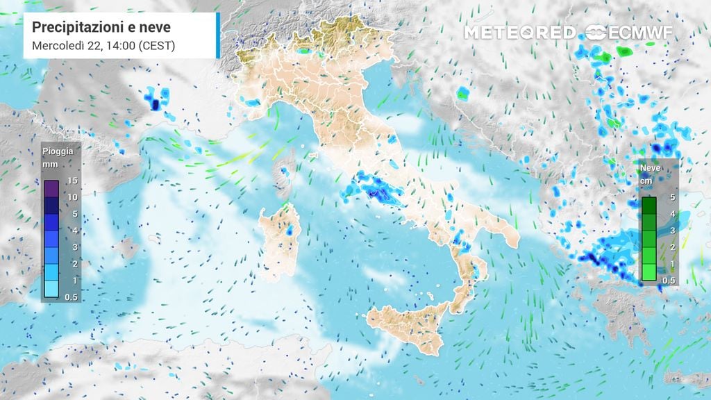 Secondo il nostro modello di riferimento, cioè quello europeo - che potete navigare qui grazie alle mappe navigabili di Meteored - le aree dove maggiore sarà la probabilità di forti temporali saranno Marche e Abruzzo, ma temporali si svilupperanno anche in aree vicine, come Toscana e Umbria, fino a qualche punto della Romagna. Più a sud l'instabilità si farà sentire in Molise e Puglia.