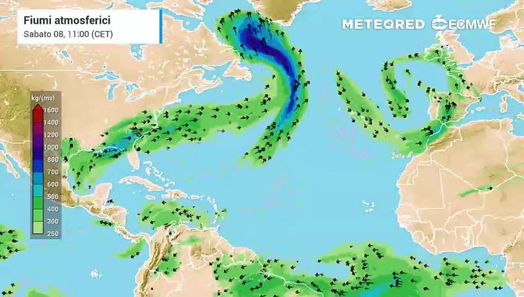 Questo “fiume atmosferico” trasporta una lunga fascia di umidità trasportata da correnti subtropicali, si dirigerà verso nord-est, convogliando enormi quantità di vapore acqueo.