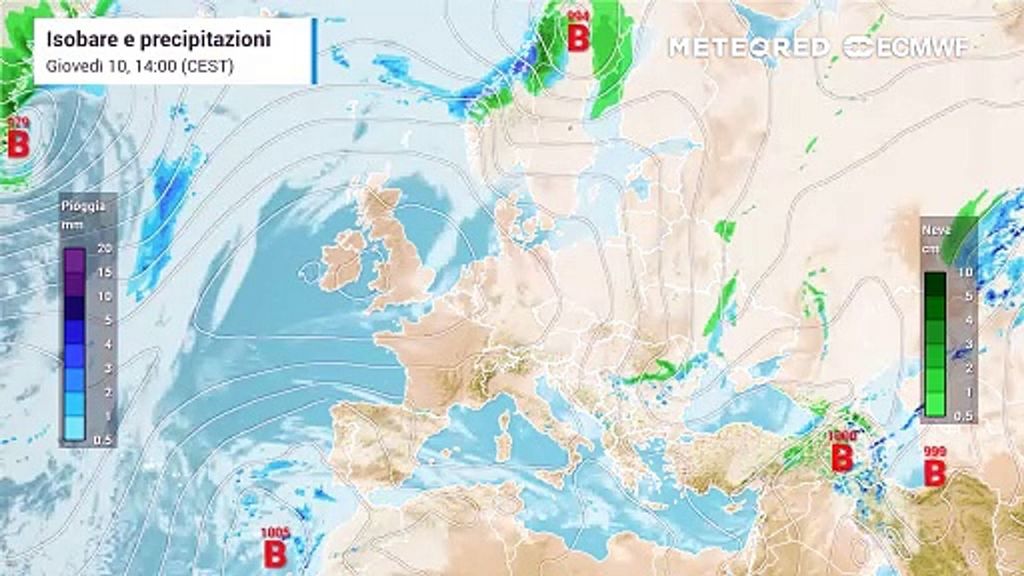 Piogge e rovesci frequenti anche al centro e Sardegna, interessato marginalmente da queste perturbazioni il sud, dove comunque qualche acquazzone raggingerà Campania e Puglia settentrionale.
