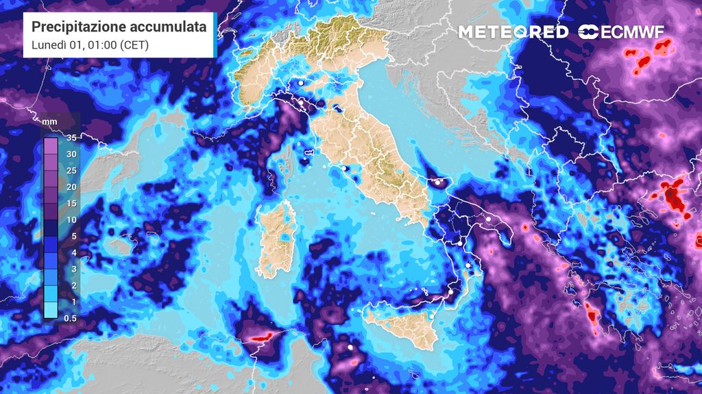I principali modelli indicano un possibile severo peggioramento su Sardegna, Sicilia e Calabria. Queste regioni potrebbero essere le prime a ricevere rovesci intensi e "temporali semistazionari" dovuti al contrasto tra aria fresca in quota e mare ancora tiepido.
