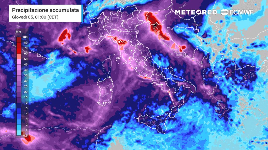 La variabilità, dunque, sarà la parola chiave di tutta questa prima settimana di febbraio con pioggia diffusa su tutte le regioni italiane, ma con maggiore enfasi sull'area tirrenica e su gran parte del Settentrione. Non a caso, gli accumuli totali potranno superare ampiamente i 70 millimetri, fino a raggiungere i 100 millimetri tra Campania, Liguria e alta Toscana.