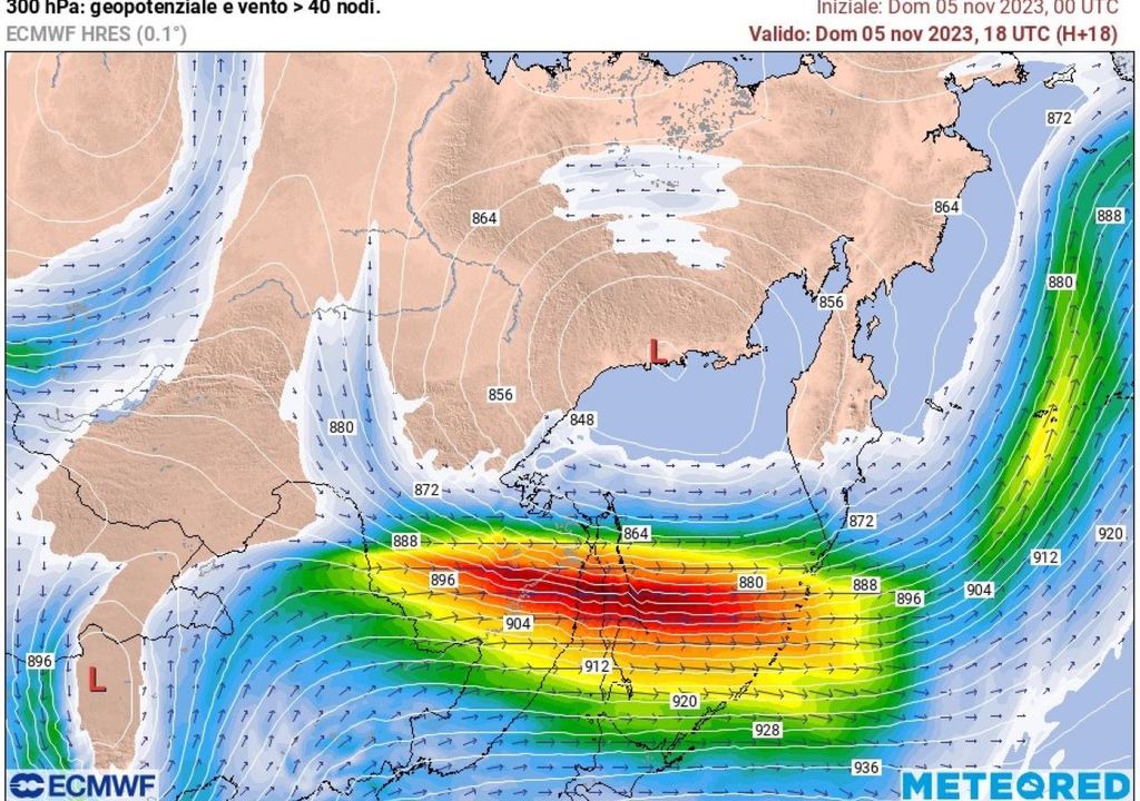 In particolare sull’Asia orientale, cosi come sul Canada centro-orientale, si sono instaurate delle vastissime aree con valori di geopotenziali in quota estremamente bassi, in grado di produrre dei formidabili “gradienti di geopotenziale” che hanno alimentato ulteriormente il ramo principale del “getto polare”, imprimendogli forza e velocità lungo l’intero emisfero, specie fra Pacifico e Nord Atlantico.