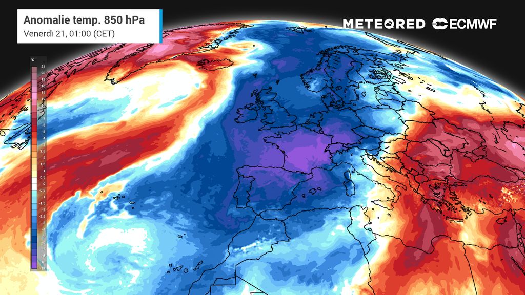 Negli ultimi giorni abbiamo registrato anomalie termiche positive diffuse, con massime ben oltre la media stagionale: localmente fino a +5°C. Con un terreno ancora caldo, mari relativamente tiepidi e tanta umidità nei bassi strati, l’ingresso di aria artica farà scattare una serie di “effetti collaterali”: