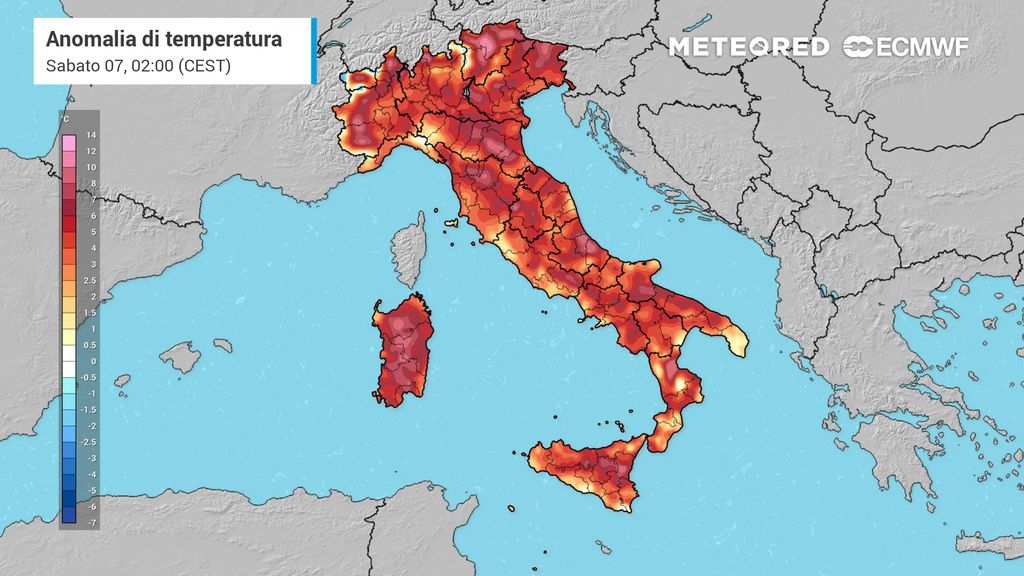 La prossima settimana con lo sviluppo di questa onda di calore che si originerà sopra il Sahara si potrebbero raggiungere valori estremi, con punte di +43°C in alcune zone di Italia, Spagna e Grecia, come già accaduto in passato in eventi simili.