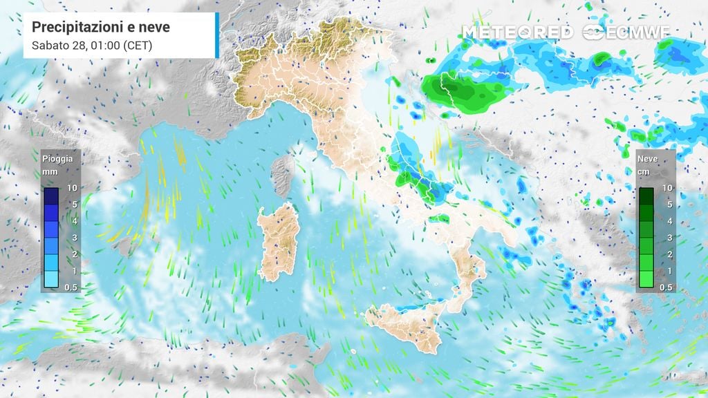 Questa configurazione è molto più comune in autunno, quando il mare è ancora molto caldo, e si manifesta oggi in forma più contenuta poiché l'Adriatico registra temperature superficiali intorno ai 10-12°C.
