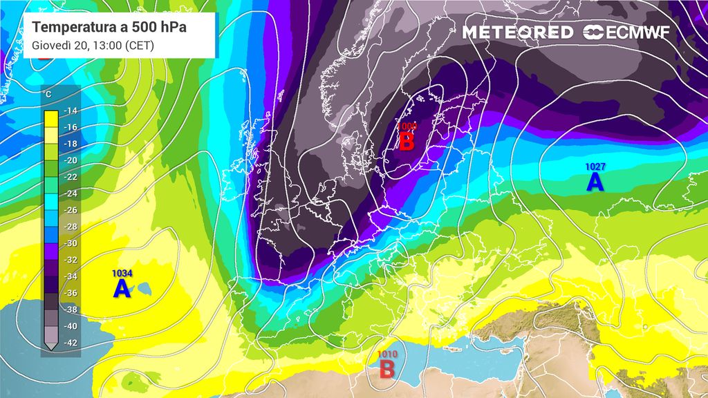 Una saccatura di origine artica affonderà verso l’Europa occidentale e poi sul Mediterraneo centrale tra giovedì e venerdì, pilotando masse d'aria molto fredde fino al cuore del Mediterraneo.