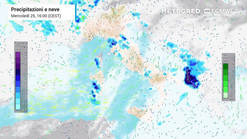 Le previsioni meteo per il pomeriggio di oggi mercoledì 25 ottobre sono caratterizzate da una nuova accentuazione dell’instabilità atmosferica con frequenti temporali su Toscana, Umbria, Lazio e Campania, localmente i fenomeni assumeranno carattere di forte intensità coinvolgendo parzialmente le province di Palermo, Messina e la Calabria tirrenica, mentre una nuova perturbazione raggiungerà i settori occidentali della Sardegna dove è prevista un’intensificazione del Libeccio che renderà da molto mossi ad agitati i mari che circondano l’isola. Da segnalare temperature in diminuzione sulla Sicilia.