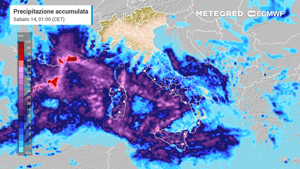 Alcuni di questi potranno assumere anche carattere temporalesco, interessando soprattutto le coste della Sardegna orientale e la Sicilia occidentale, dove arriveranno nuove piogge. Qualche pioggia entro il pomeriggio di domani si potrebbe estendere alla Calabria e ai settori del basso Tirreno.