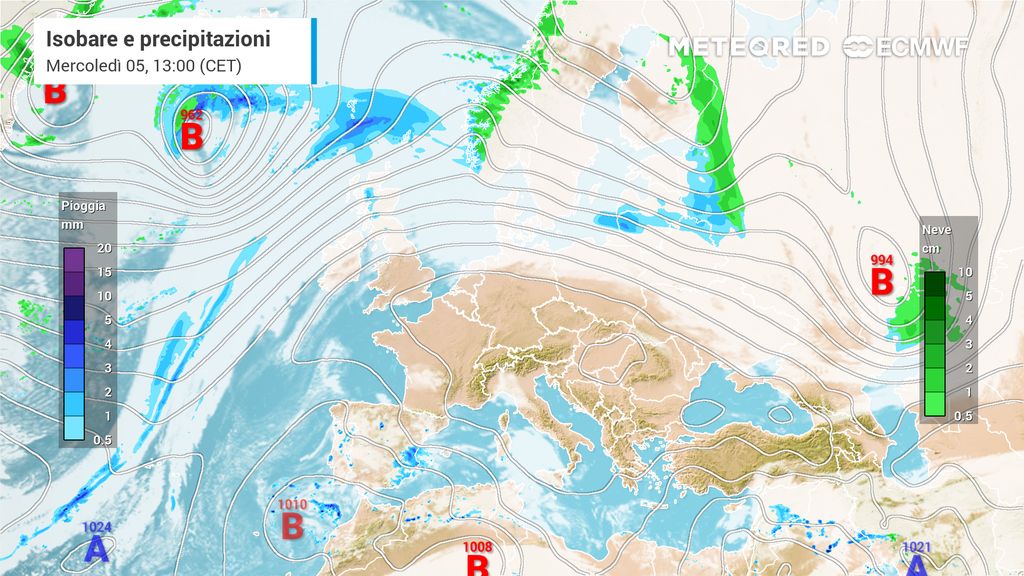 Ecco che avvicinandoci al fine settimana i modelli di riferimento di Meteored vedono un cambiamento nello scenario europeo, dovuto alla discesa di una perturbazione atlantica, che andrebbe a spingere sull’alta pressione per spostarla verso est e riportare condizioni di tempo più instabile sull’Italia.