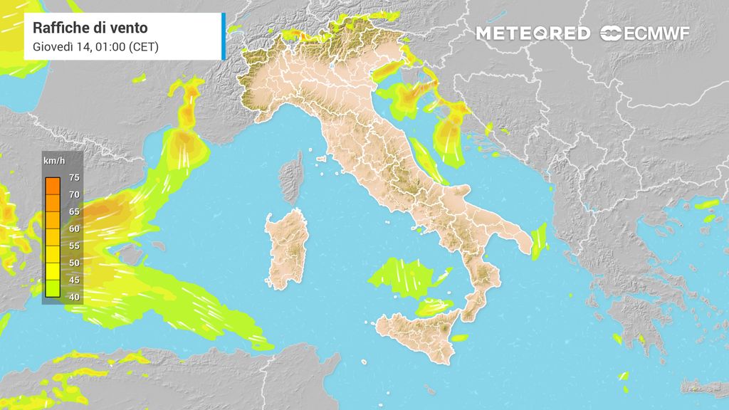 L’aria più fresca in arrivo porterà un generalo calo delle temperature, più sensibile sul versante tirrenico e al Sud. Previste massime tra i 10 ed i 14°C in pianura al Nord, quindi senza particolari variazioni, tra i 14 ed i 17°C al Centro e tra i 15 ed i 20°C al Sud e sulle Isole.