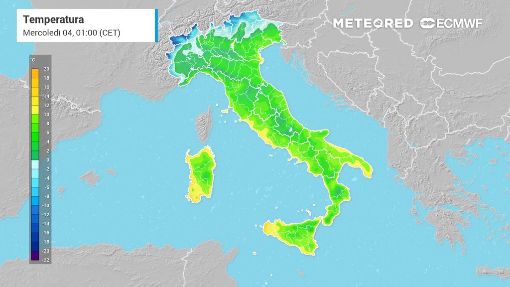 Tra 10 e 14°C i valori massimi previsti al Centro, tra 7 e 12°C al Nord. Anche a seguire le variazioni sembra saranno di poco conto, segnaliamo comunque un irrigidimento dei valori notturni da giovedì in poi.