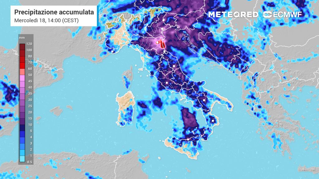 Previste dunque piogge anche a carattere di rovescio e temporale per oggi su Lombardia, Triveneto ed Emilia-Romagna, zone interne di Toscana e Lazio, su Umbria, Marche, Abruzzo, Molise, sui settori appenninici della Campania, su Basilicata e Puglia centro-settentrionale. Sui settori adriatici di Veneto, Friuli Venezia Giulia ed Emilia-Romagna in particolare, sono previsti gli accumuli maggiori.