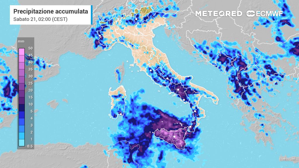 Sabato 21 la situazione si sarà dunque ribaltata, con il Sud su cui sarà tornato ad essere prevalente il sole e il Centro-Nord interessato da rovesci e brevi temporali sui rilievi e localmente anche in Pianura Padana.