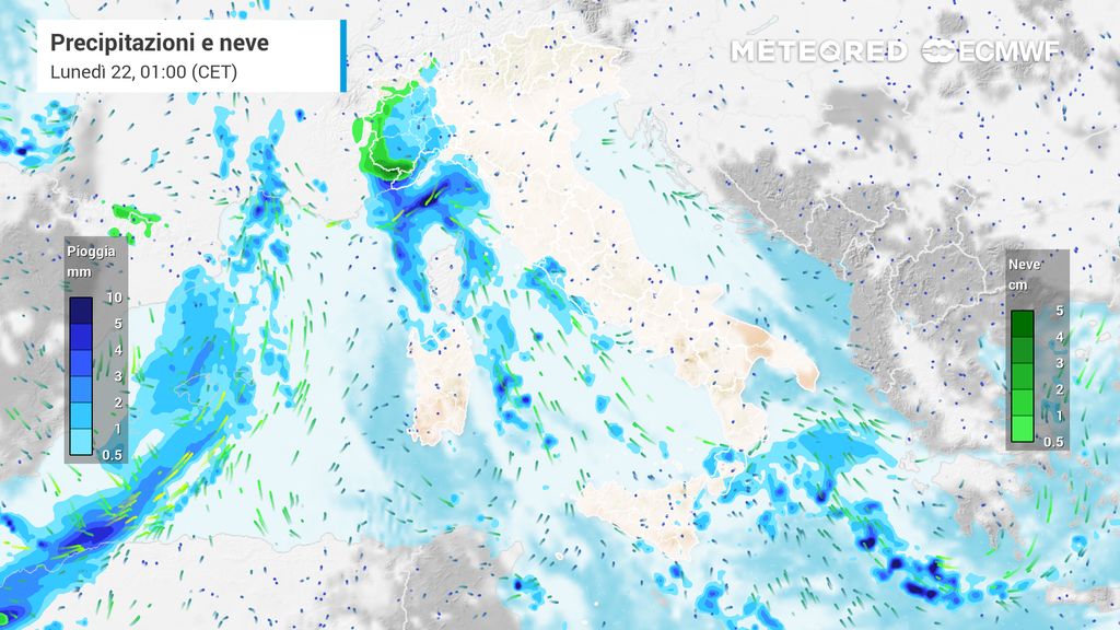 Già a partire da lunedì, una perturbazione collegata a una saccatura atlantica inizierà a interessare le regioni occidentali della Penisola. Le prime precipitazioni si concentreranno soprattutto al Nordovest, con piogge su Piemonte e Liguria, in estensione nel corso della giornata verso parte della Lombardia.