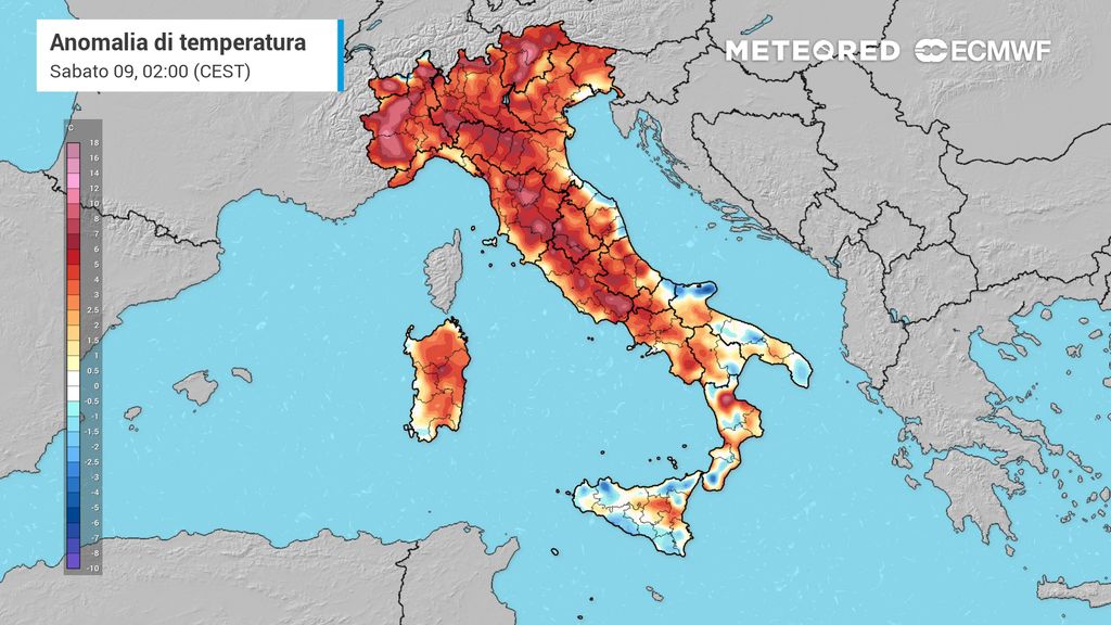 La giornata di sabato 9 agosto segnerà un ulteriore peggioramento del quadro termico.
