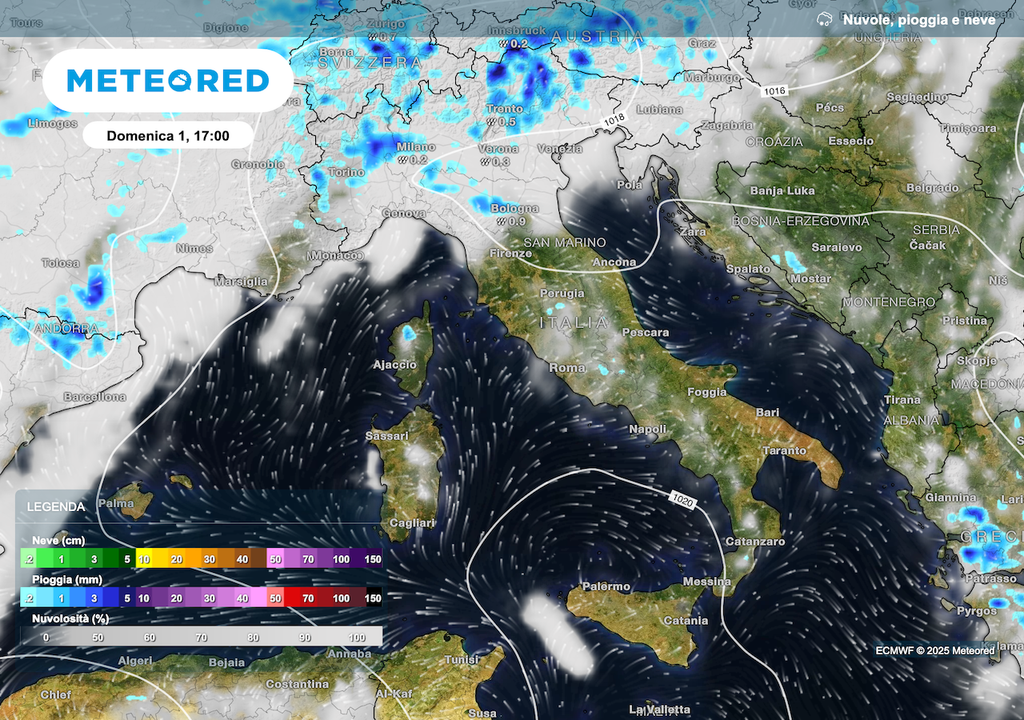 Qualcuno potrebbe anche sconfinare in alcune zone pianeggianti del nord, ma anche se indicato dai modelli riteniamo poco probabile il rischio di rovesci. Qualche isolato scroscio anche in Appennino.