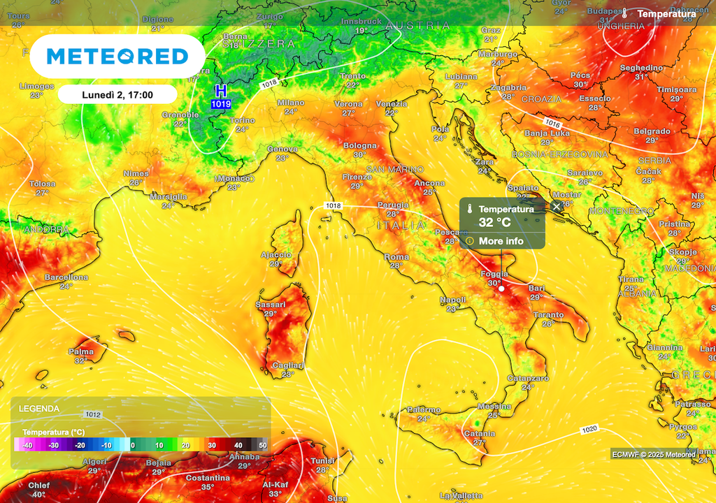 Le temperature infatti al nord si portano a 31-32°C, ma le notti restano piacevoli sui 16-18°C. simili le temperature al centro, un po’ meno alte al sud, sui 28°C in genere di giorno.