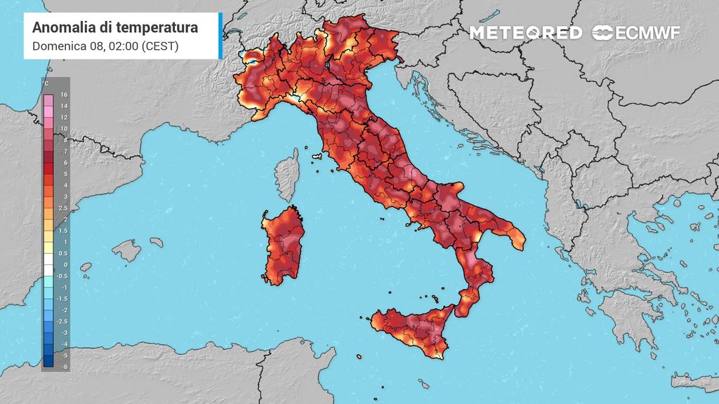 L’anomalia termica sarà più marcata nelle pianure padane e nelle regioni centro-meridionali, dove l’umidità elevata amplificherà la sensazione di afa. Specie attorno i grandi centri urbani, dove agirà pure l’effetto dell’isola di calore.