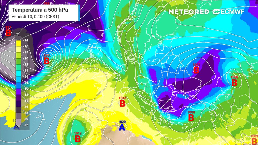 Oltre alla maggiore probabilità di vedere l’isolamento di gocce fredde (depressioni in cut-off) sui mari italiani (Tirreno, Ionio e Adriatico meridionale), che innescheranno instabilità diurna con temporali, anche intensi, in prossimità dei monti, nelle ore centrali della giornata.