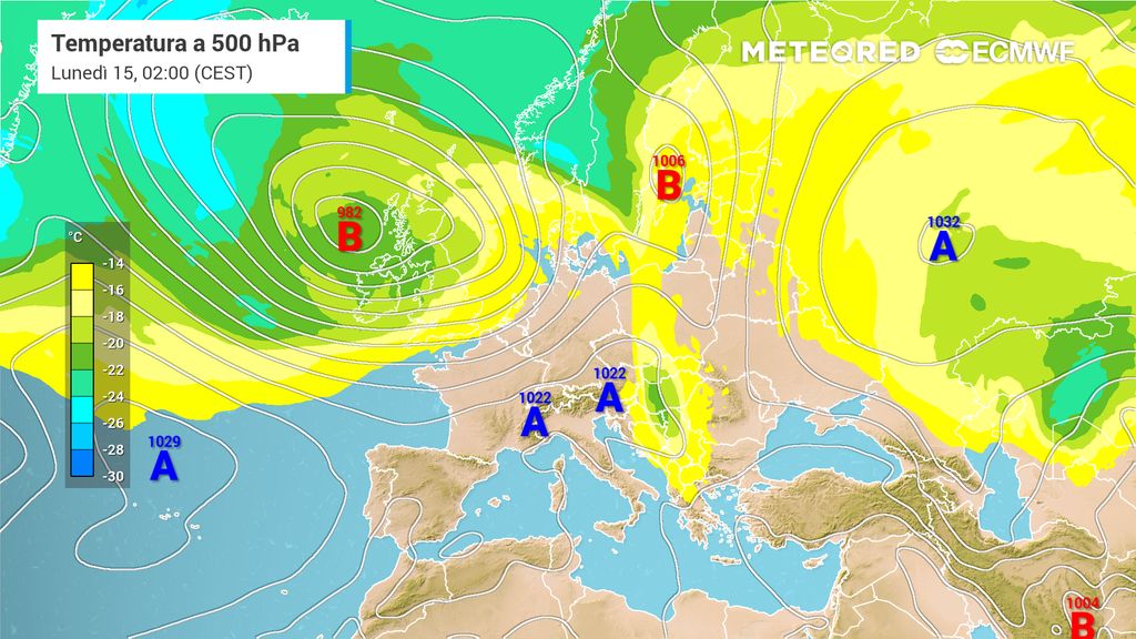 Questo flusso zonale "blocca" le incursioni di aria fredda verso sud e limita la propagazione delle perturbazioni atlantiche, favorendo un clima più stabile e mite sul continente.
