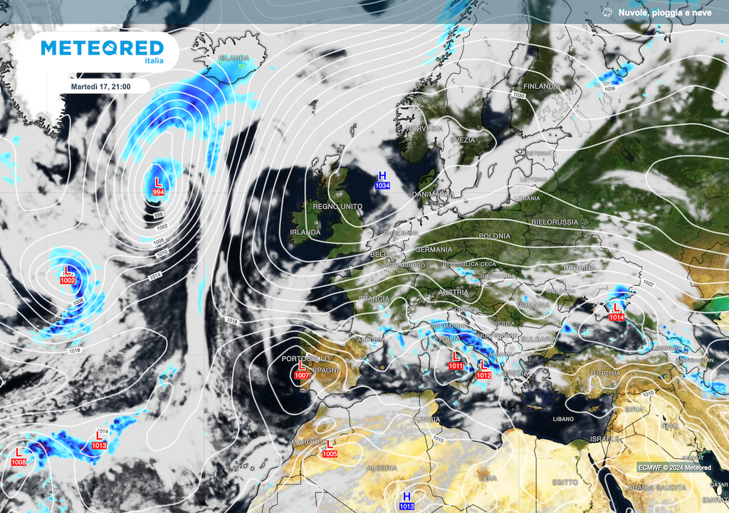 Nel pomeriggio di oggi martedì al nord piogge diffuse fra basso Piemonte ed Emilia Romagna, via via più deboli andando verso il fiume Po. A sera si intensificano le precipitazioni sull’Emilia e soprattutto in Romagna. Al centro estese e a tratti intense lungo Marche, Abruzzo, Molise e anche Puglia, a tratti temporalesche. Temporali nel sud della Sardegna e fra Lazio e Campania, a tratti rovesci temporaleschi anche in Basilicata e sud della Sicilia. Piogge irregolari ma deboli sulla Toscana, nuvoloso ma scarsi fenomeni sulle Alpi.